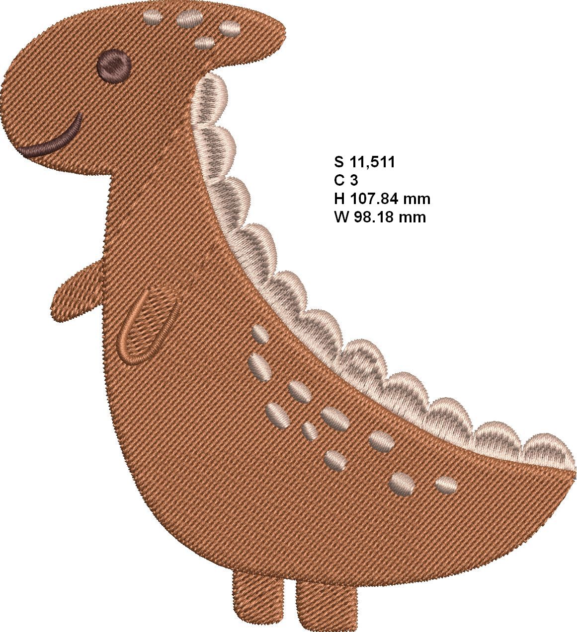 These easy stitching Dinosaurs can be stitched in any colour on clothing, tote bags, gifts, linen and décor items. Always stitch a test design. Results of embroidery designs can vary a lot on different materials. Use tearaway or cut away that suits the material you are going to embroider on and hoop correctly. Always use the smallest hoop that fit the design. The colours used is only a guideline and you can substitute it with your own selection.The size of each design shows on the images. Please note that the large (XL) designs are not included in all the formats e.g. JEF.