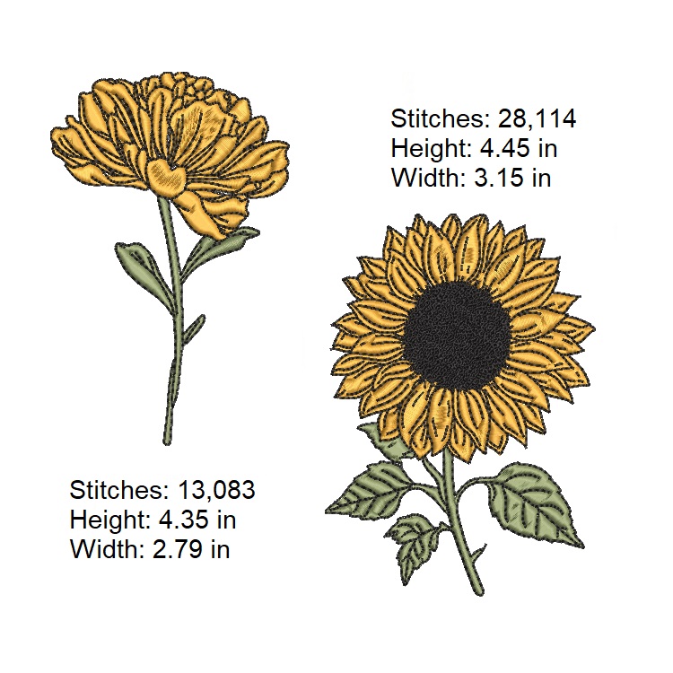 Beautiful florals set 2 - Includes:4 separate flowers designs (5x5 hoop) - for tea towels, placemats, clothes1 large grouped design (8x12 hoop) - for tote bags, shirts or any other projects.