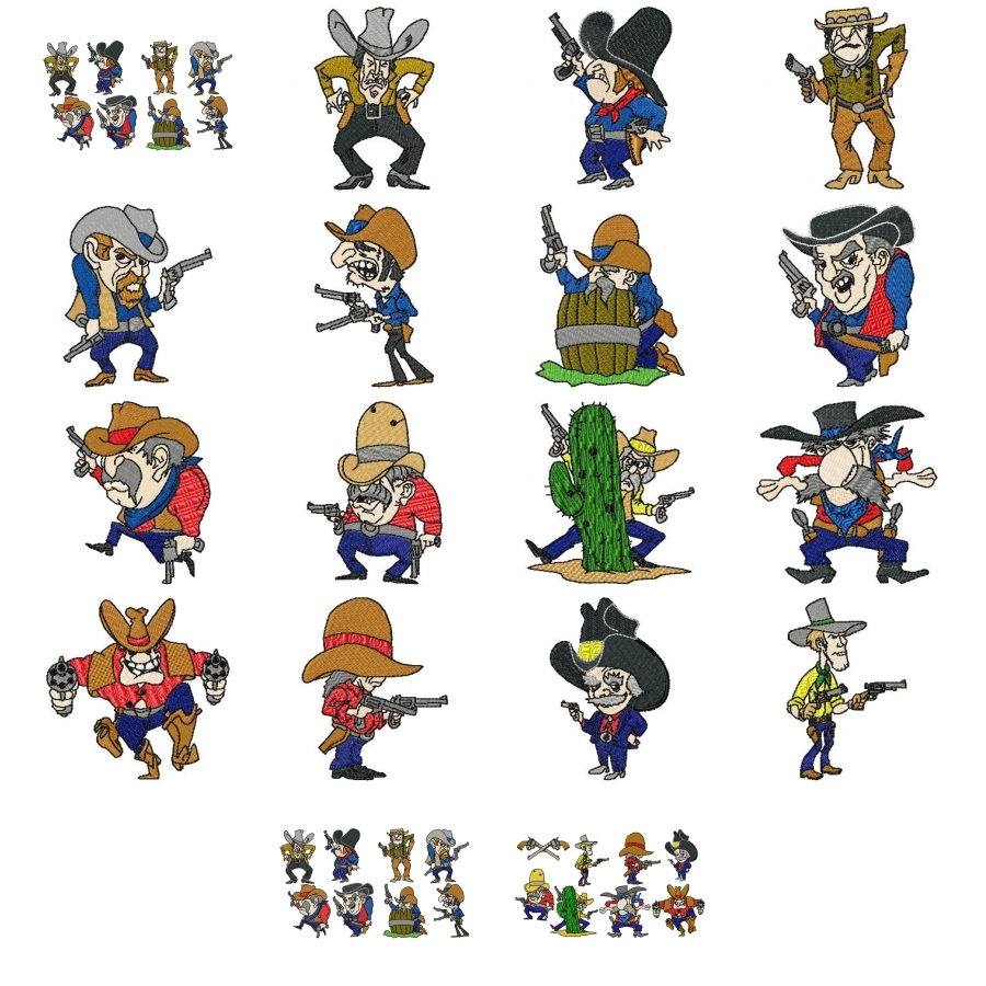 This is the second set of my new western series. Ready for the gun fight, these characters will be fun on many fun western themed projects. The fully filled in larger patterns would be great on a wall hanging, on a Kite or banner, sweatshirts, etc. They would be great on any article of clothing or quilt, or any other project you would like to create. Even quilt or clothes labels. I would love a photo to see how you have used these fun patterns. Please remember to hoop and stabilize well as some of these patterns are very large with fills. The colour choices on the sheet are from the brothers extended list but the actual sew-out colours are your choice. Please help yourself to the free 4x4 design, the other sizes are included in the set. I would love a photo of your finished projects using any of my designs. The jump free Penny work set is available under EO619_Do You Feel Lucky_BW Thanks and Enjoy, Beryl