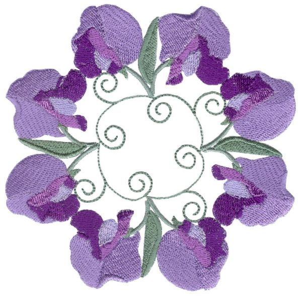 You can almost smell the heavenly scent of these charming and artistic sweet pea designs, which include 12 designs for the 5x7 hoop size, which can be used on table, kitchen, and bedroom or bathroom linens and on curtains, cushions or clothing.